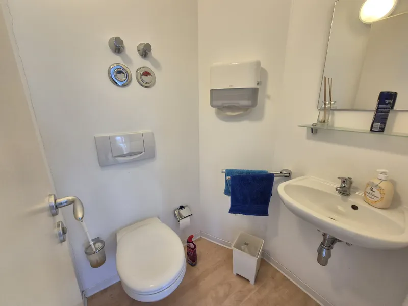 Licht und Helligkeit. Ausreichend Kabelschächte mit Netzwerkverkabelung liegen im Boden. Ein Glasfaseranschluß ist vorhanden. Die Raumhöhe beträgt 2,80 m. Ein WC sowie eine kleine Abstellkammer sind vorhanden. Ein KFZ-Stellplatz im Freien gehört zum Büro. Weitere Parkmöglichkeiten findet man an der Straße.