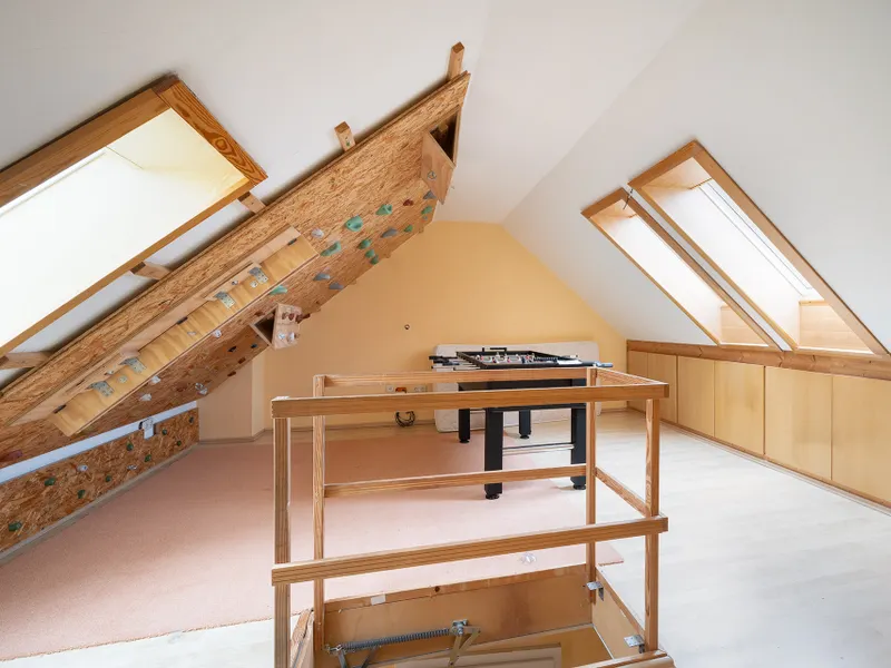 Der Dachspitz ist als Hobbybereich ausgebaut und gut nutzbar.